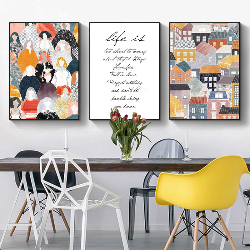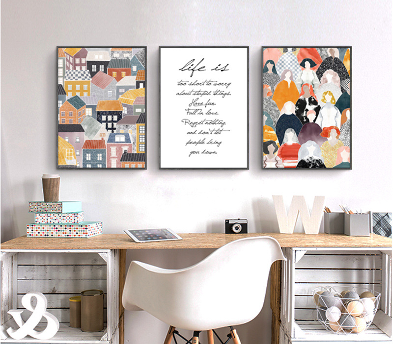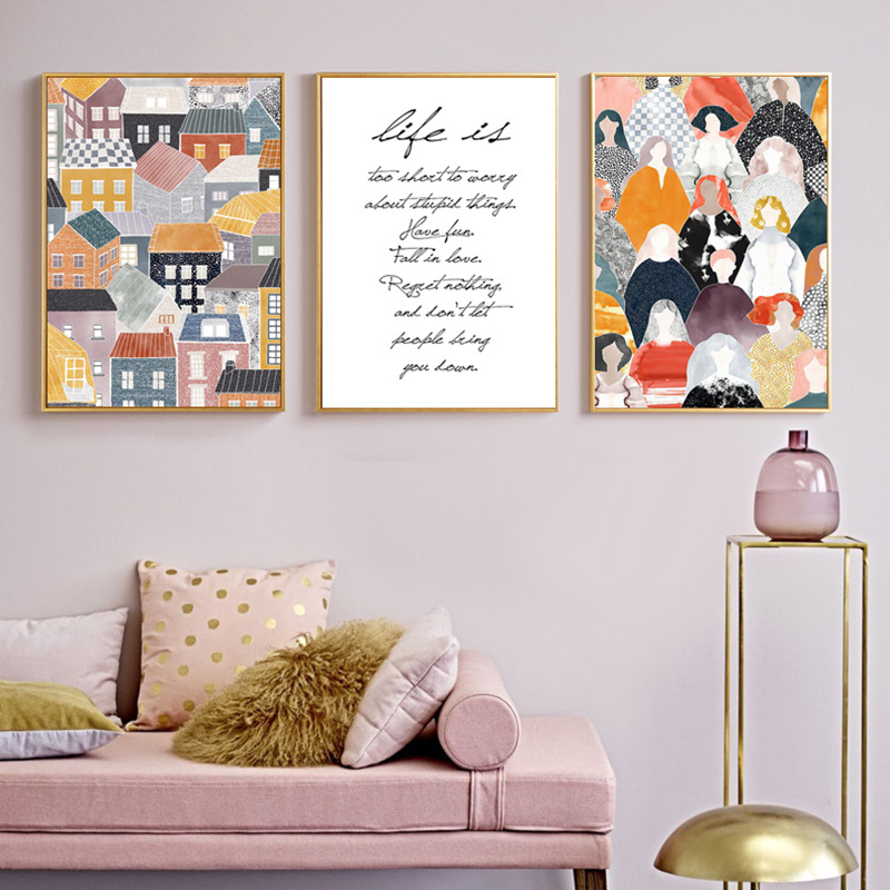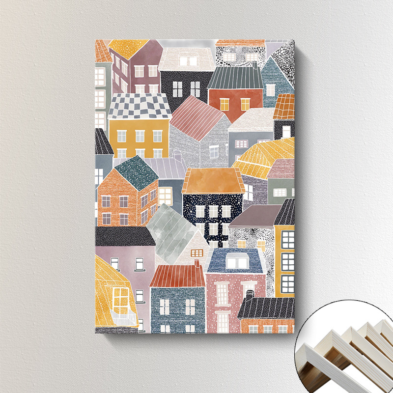抽象水彩手繪建築房子莫蘭蒂色 三款