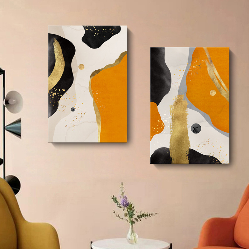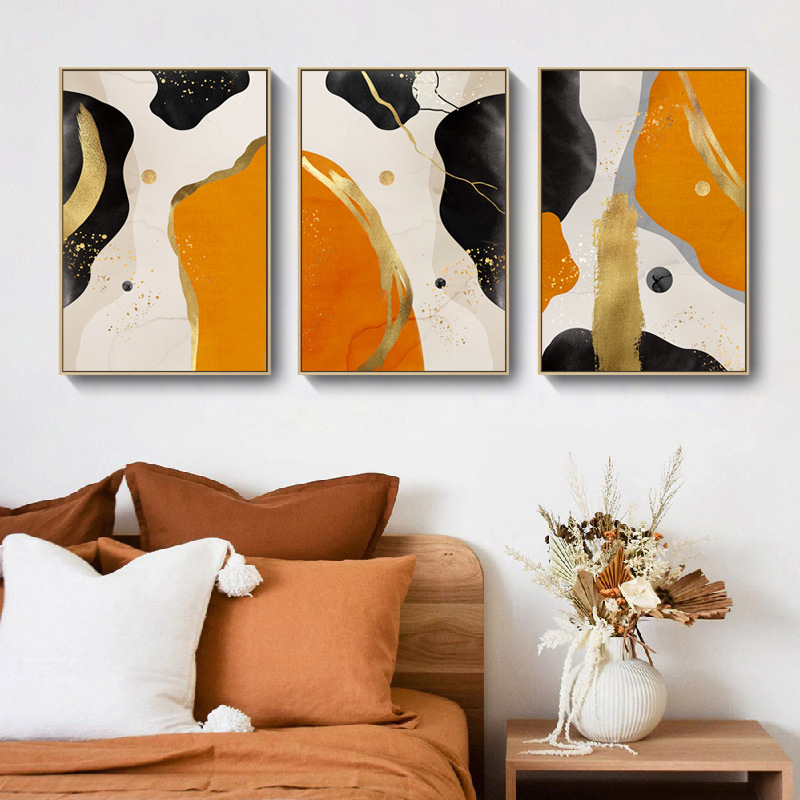 橙色抽象色塊線條三聯畫 可單買 三款