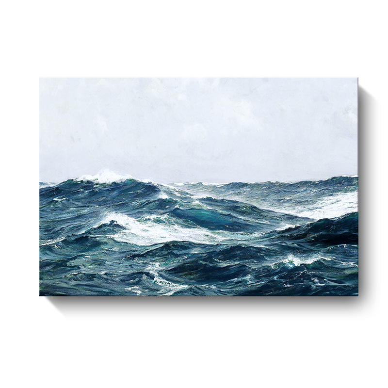 現代客廳裝飾畫 海浪藍色大海風景 橫式